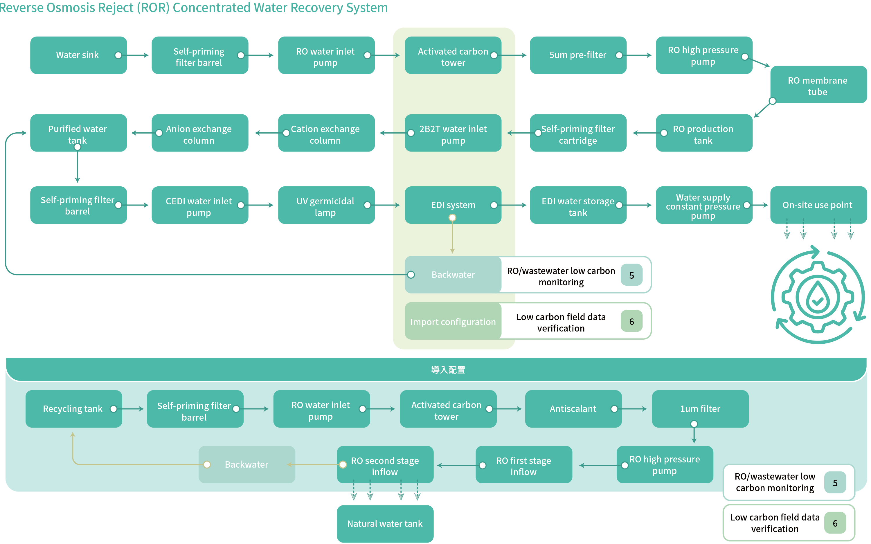To increase the water recycling rate, the company has actively invested in the water recycling system. We have installed an electroplating-rinse-water recycling system and the dicing process wastewater recycling system in 2022 and added the recycling system for reverse osmosis (RO) concentrated water, which was commenced in 2023. It is expected to introduce digital monitoring and control in 2025 to not only observe the wastewater recycling and reuse rate, but also grasp the RO water recycling rate of each process and seek opportunities for re-optimization. The water recycled in 2024 was 65,958 tons, with the recovery rate of 19.20%. The target benchmark for the process RO wastewater recycling rate was improperly set for 2024. The original assessment mistakenly used tap water instead of the actual RO concentrated water as the benchmark, resulting in the target value being set too high. The RO wastewater recycling rate in 2024 was 39.01%.